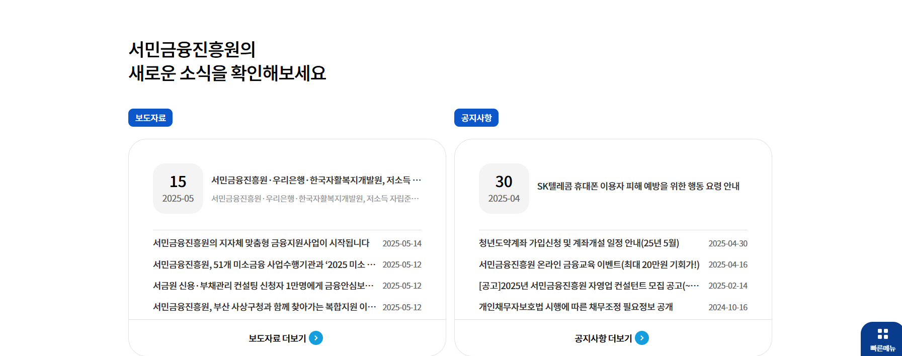 서민금융진흥원 홈페이지