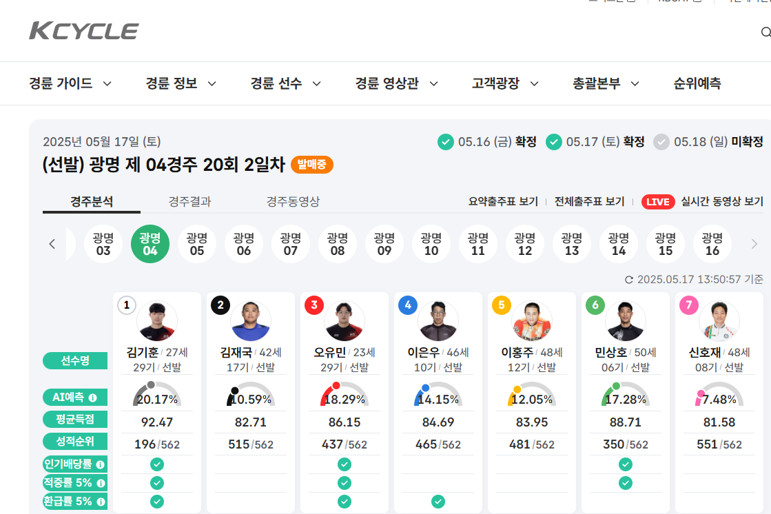 선수별, 경주별, 출발위치별 통계 활용으로 승부 예측의 정밀도를 높일 수 있습니다.