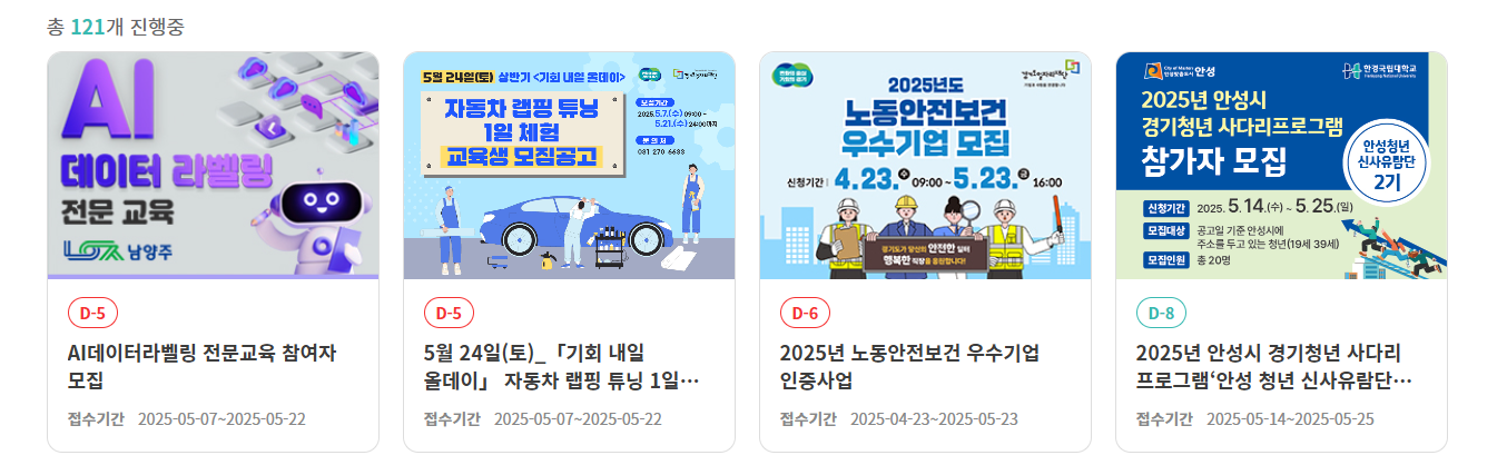 - 접수 시작일과 마감일은 사업마다 상이하므로 사전 체크는 필수입니다.